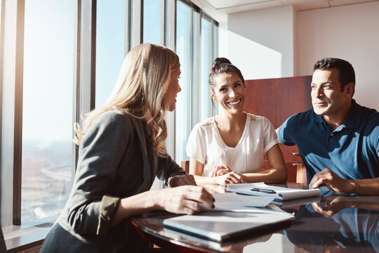 Corporate professionals in an insurance meeting discussing business plans and strategies