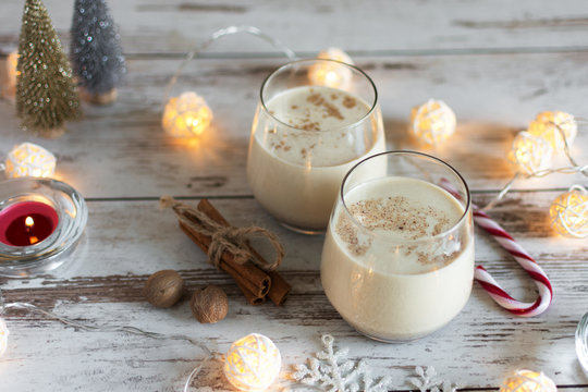 Fresh eggnog with cinnamon and nutmeg for christmas holiday.
