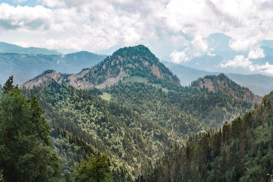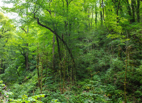 Green trees in the Caucasus mountains.