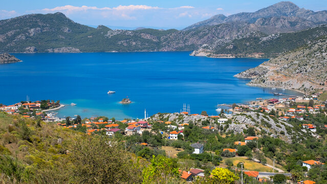 Amazing scape from Selimiye Village in Marmaris, Turkey. Marmaris is near the Mediterranean Sea. Beautiful destination for vacation with Cruise.