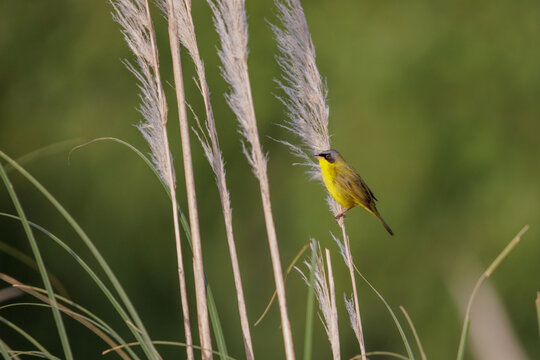 Masked yellowthroat (Geothlypis aequinoctialis) perched on a Cortaderia selloana.