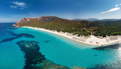 Veduta aerea di una spiaggia di Golfo Aranci in Sardegna
