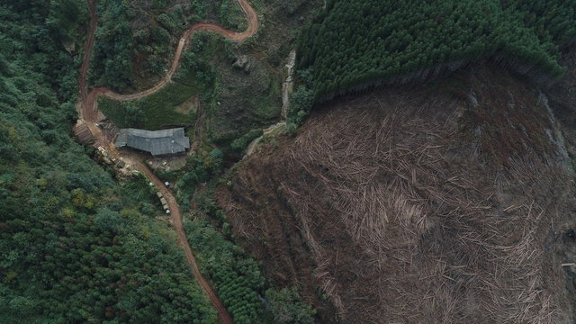 Move the camera, Flying Aerial drone shot panoramic view, Road over the top of a mountain green jungle forest on mountain background.