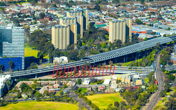 Melbourne, Australia. Modern tunnel along the insterstate, aeria
