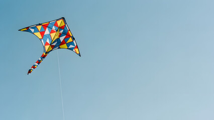 Colorful Festival Kite Flying High in Blue Sky with Decorative Tail