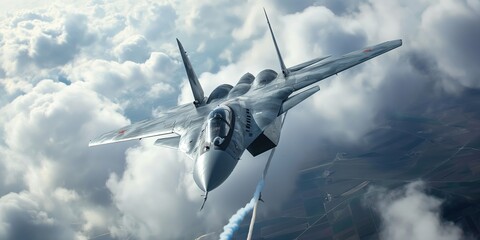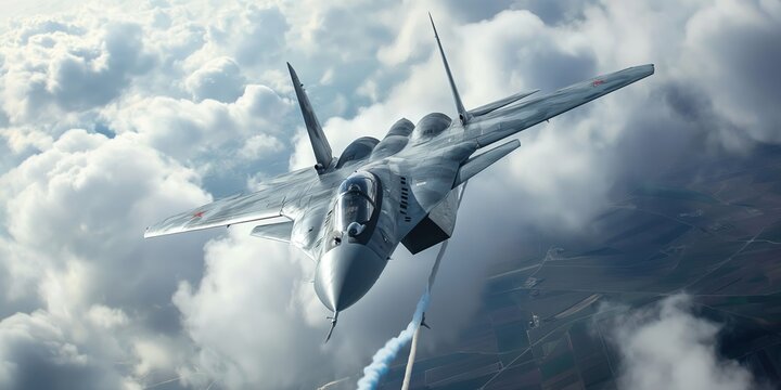 Sukhoi SU-57 fighter jet soars through a cloudy sky, engaging in mid air refueling, showcasing its advanced capabilities and strategic importance in military operations