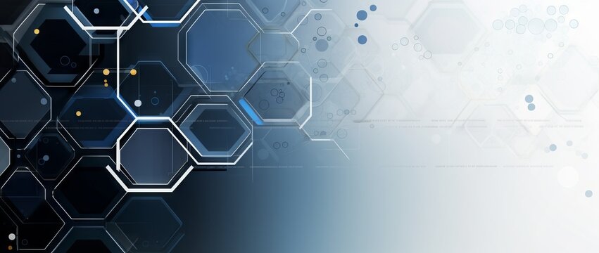 Abstract Blue Hexagonal Pattern Background With Futuristic Technology Design. This image features a detailed abstract background of interconnected blue hexagons with a futuristic and technological aes