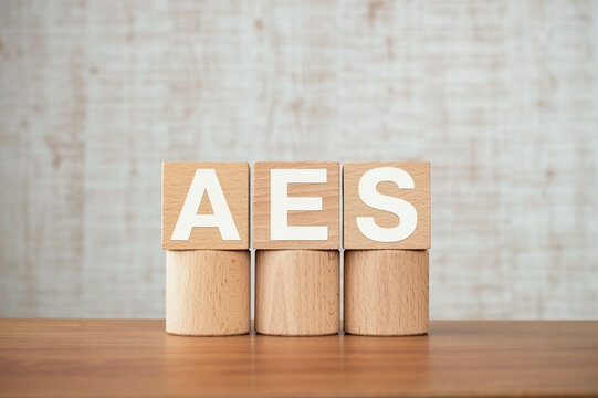 There is wood cube with the word AES. It is an abbreviation for Advanced Encryption Standard as eye-catching image.