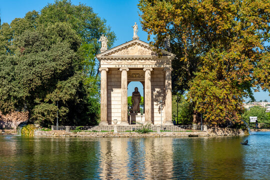 Panoramic Sights of Temple of Aesculapius in Villa Borghese Gardens in Rome, Lazio Province, Italy.