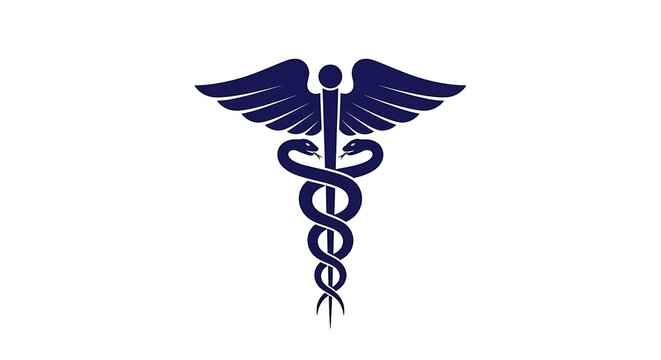 Medical caduceus symbol with a snake and wings is a healthcare icon on a white background