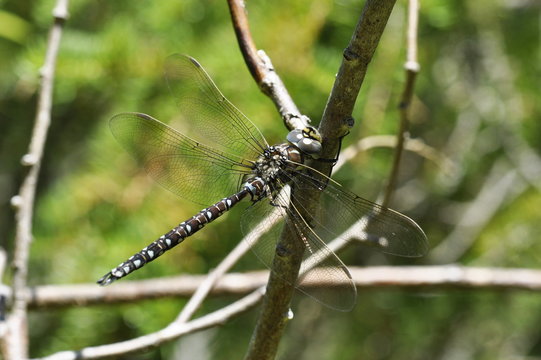 The dragonfly Aeshna subarctica sitting on a twig