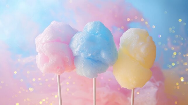 Pink and blue cotton candy clouds on a pastel background, studio shot, product display