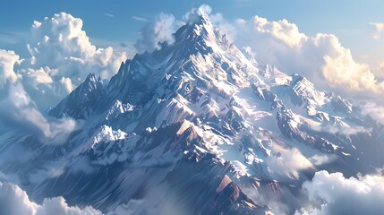 Pastel-hued, low-poly mountain range at sunrise, exhibiting a soft, crumpled paper aesthetic; serene and dreamlike