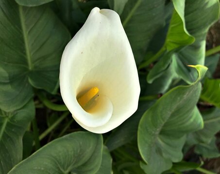 Elegant White Calla Lily in Bloom – Close-Up Botanical Nature Photography. Close up to calla lily. Zantedeschia aethiopica isolated. white deep flower.