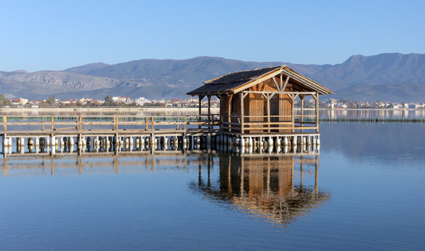 A traditional stilt house in the lagoon of Messolonghi, Greece, called "Pelada" in Greek.