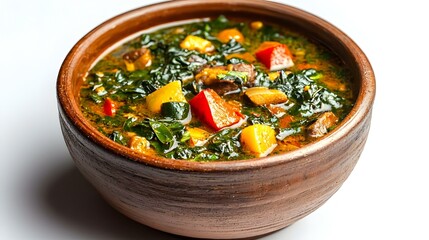 Efik Afang soup Nigerian served in a clay bowl