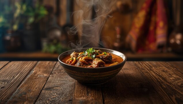 Vivid And Colorful Scene Of A Traditional Nigerian Dish, Richly Seasoned With Spices And Vibrant Ingredients, Capturing The Essence Of Authentic African Cuisine.