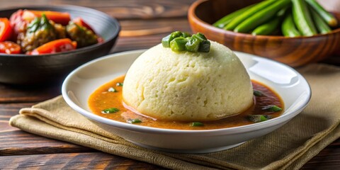 Fermented cornmeal mixture shaped into a round ball, commonly paired with okra soup
