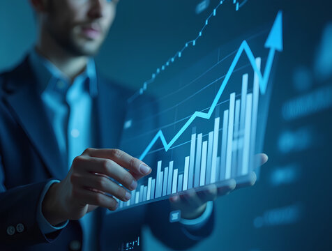 Businessman illustrates growth graph and analyzes financial data , affaires, finance,