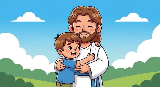 Jesus Christ Child Hugging.