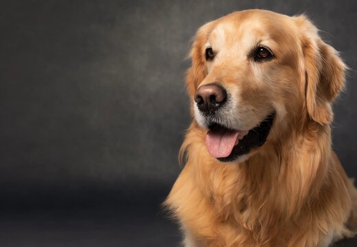 Close-up of super cute golden retriever dog -  most popular and friendly intelligent breed with luscious golden coat and gentle temperament - super cute pet for dog lovers
