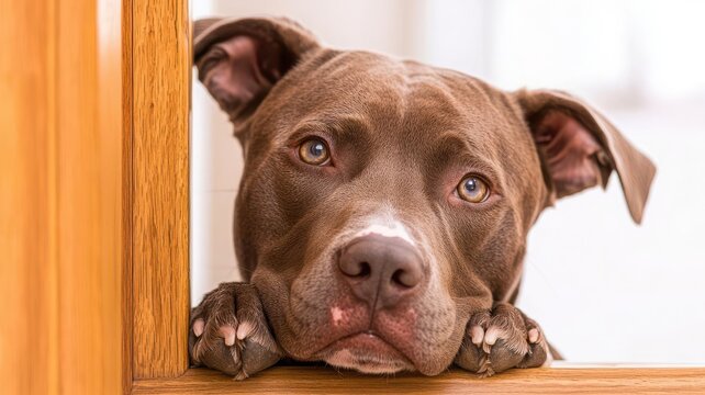 Pitbull waiting by the door for its owner to return, unwavering loyalty, the patient pet