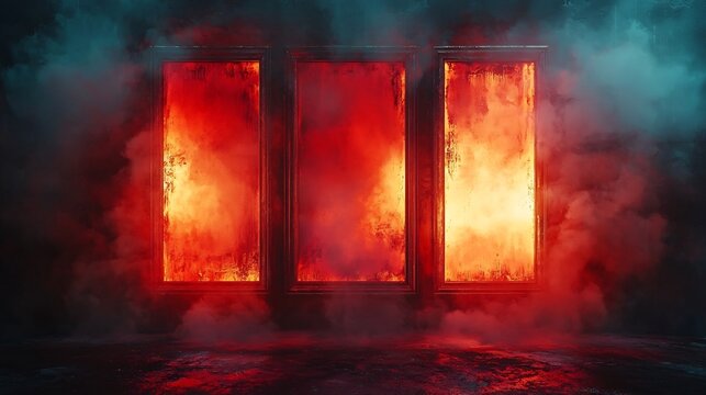 A somber indoor scene with sunlight filtering through narrow vertical openings in dark walls, casting rays on a gravel floor, evoking a sense
