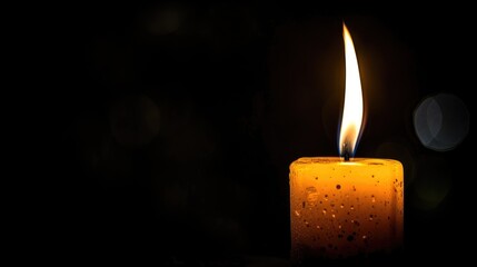 Candle aflame against dark backdrop