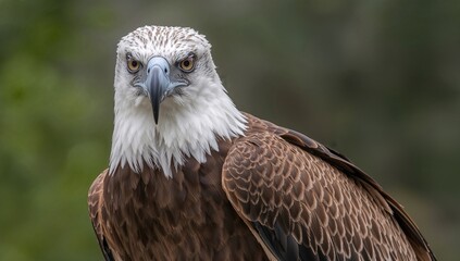 Close-up of brown eagle with striking yellow eyes in natural habitat