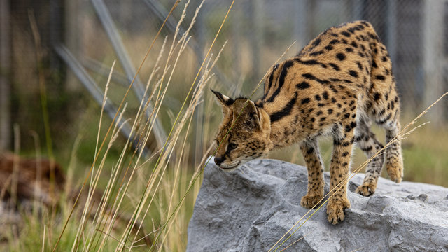 Captivating portrait of an african serval cat against a neutral background for animal lovers