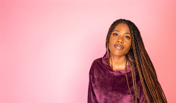 Braided hair, close up of African American woman with cornrows hairstyle in studio. Beauty, fashion and style concept for salon, hairdresser or beauty product