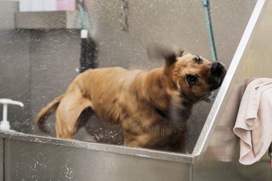 Dog Having a Bath at a Pet Salon