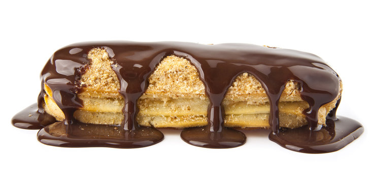 Delicious Cream Filled Chocolate Eclair Pastry Isolated on a White Background