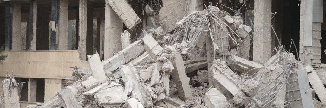 Industrial concrete building destroyed by an earthquake