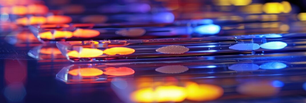 Electrophoresis of DNA fragments, Close-up, DNA molecules added to an agarose gel cell