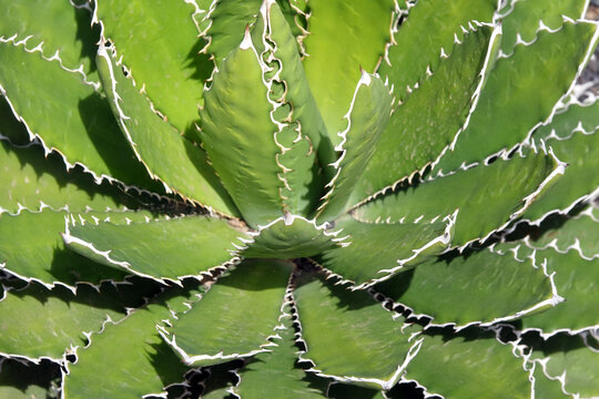Close up of vibrant green agave leaves with spikes