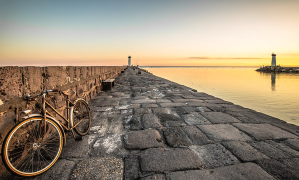 Panorama view of Herault river at the port of Agde, Languedoc-Roussillon France