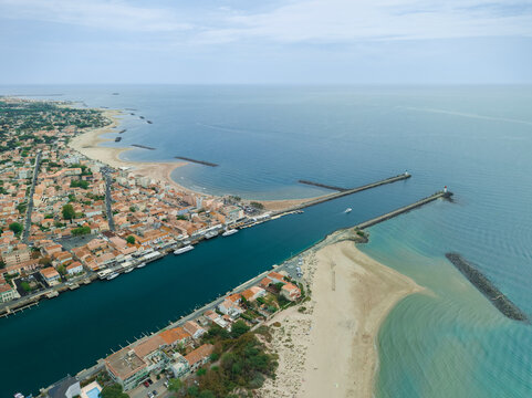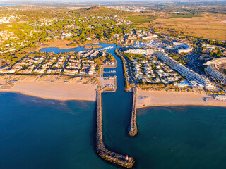 Aerial view of Cap d'Agde a seaside resort and naturist village on France's Mediterranean coast, Europe