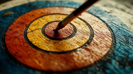 Aged target with arrow in the center, bathed in sunlight