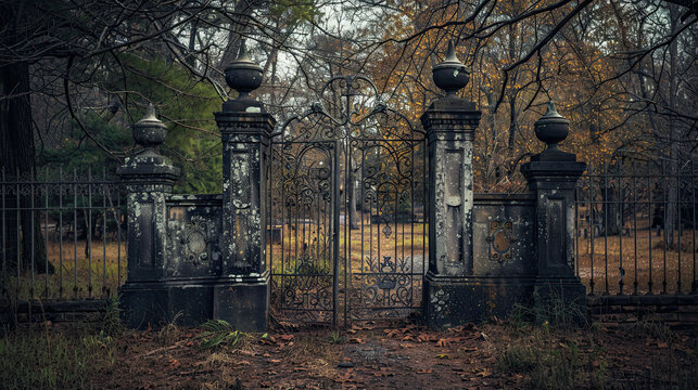 Scary old cemetery gate
