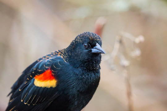 Male red-winged blackbird (Agelaius phoeniceus) in autumn