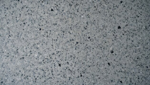 Gray polished concrete surface with scattered black and white aggregate pieces