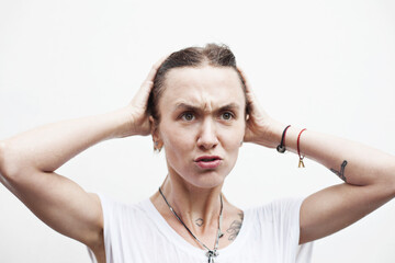Young woman with aggressive facial expression