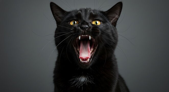 Snarling wild cat close-up showing bared teeth and intense green eyes