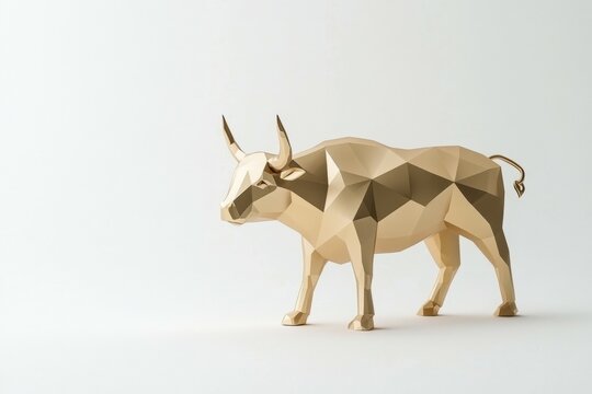 Gold bull statue stands on a white background