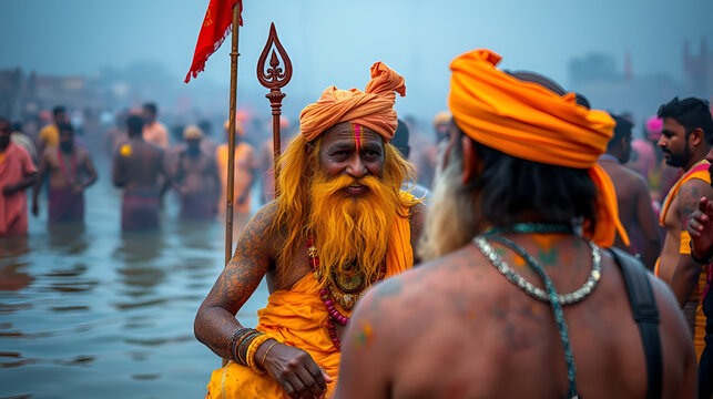 Indian sadhu at mahakumbhmela 2025, prayagraj mahakumbh, kumbhmela prayag, aghori baba, hindu festival gadring, deot at sangham ghat for holi dip.