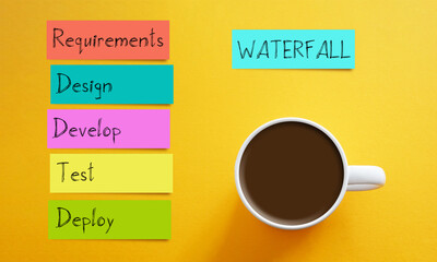 Agile development methodology, businessman use laptop with virtual screen of agile icon for process that will help you work faster By reducing step-by-step work and focusing on team communication.