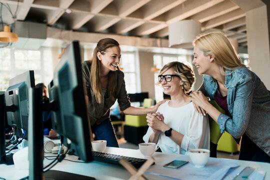 Young and diverse group of women working together in a startup company office