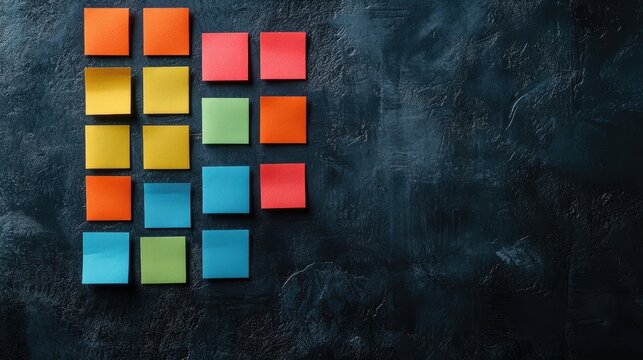 Agile Scrum Board with Colorful Sticky Notes on Dark Textured Background for Project Management and Workflow Visualization