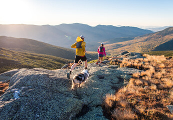 Woman mistress playing with her dog agility jumping over a hurdle obstacle